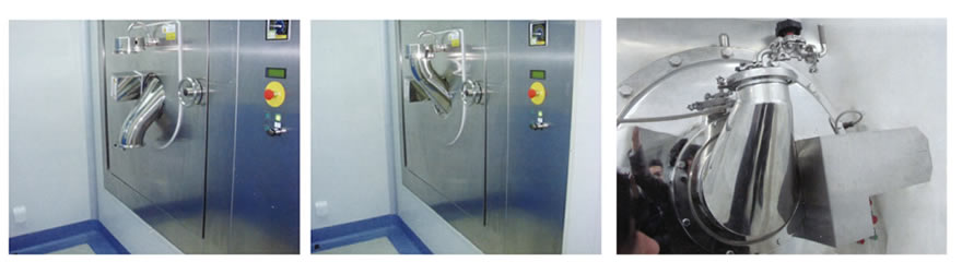 本產品對膠塞、鋁蓋處理(lǐ)工藝主要采用先進的真空吸料、蒸汽滅菌、真空幹燥等工序。膠塞、鋁蓋從自動吸料、強力噴淋、慢速翻滾、超聲波 等多項(xiàng)技術作(zuò)用下洗(xǐ)滌、矽化、蒸汽滅菌、真空幹(gàn)燥(zào)、熱風再熱抽真空幹燥,至自動出料,全在一機內PLC程控器控製下全(quán)自(zì)動操作完成, 無中間轉(zhuǎn)序,不產生交叉汙染,同時本(běn)機對各工序的運作狀態,能在顯示屏上動態(tài)顯示,直觀了解機(jī)組運行情況和自動(dòng)記錄(lù)各項運動參數。