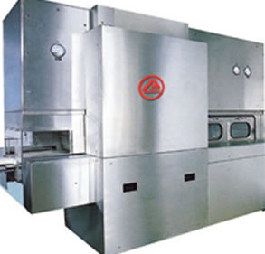 整機與瓶(píng)接觸部(bù)分均用不鏽鋼製造。隧道中輸(shū)瓶網帶采用日本(běn)三菱變頻調速。整機PLC控製,觸摸屏全過(guò)程動態(tài)監視,熱風循環(huán)溫度自動控製(zhì)並記錄(lù),操作方便。