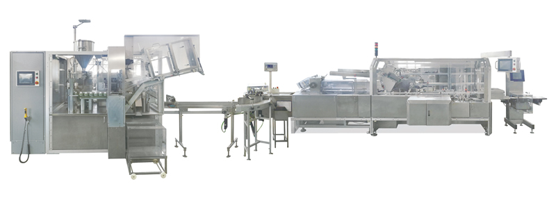 YRG-I全自動軟膏灌裝封尾聯動生產線是我公司研發的新型膏體灌裝設備。該聯動生產線(xiàn)適用於各(gè)類鋁(lǚ)管,鋁塑(sù)管(guǎn)、軟管對各種膏霜、乳液類、油劑等物料的灌裝。聯動生產線(xiàn)包括灌裝、封尾(wěi)、折紙、裝盒、在線稱重、塑(sù)封、打碼、裝箱及碼垛。可連線使用也可單機使用。本設備完全符合GMP要求。